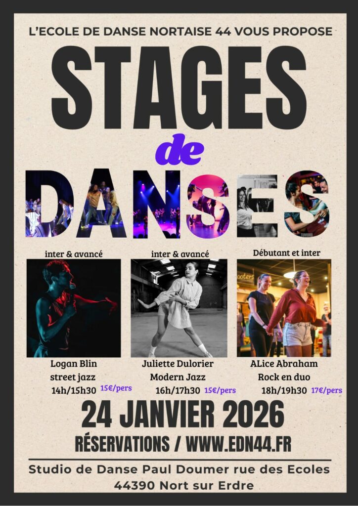 Comme l’an dernier, l’EDN vous propose 3 stages de danses en amont des rencontres chorégraphiques « Danses en Erdre ».