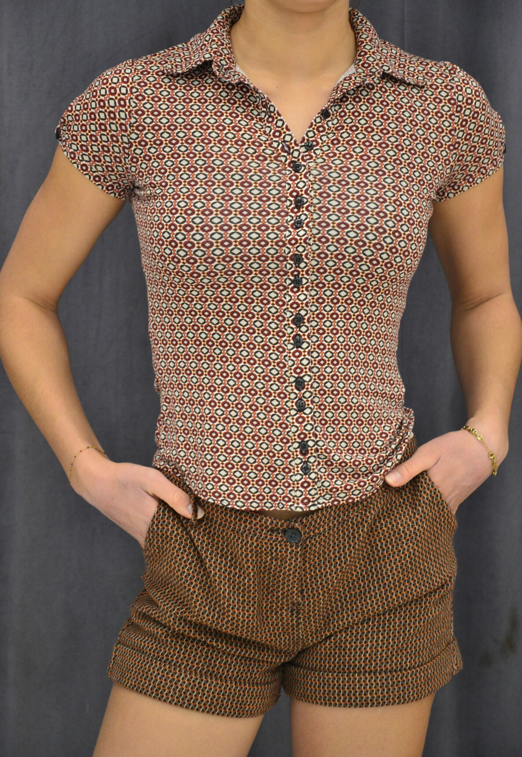 2 chemisiers assortis type hippie marron bouton
